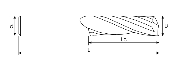 | Model | Cutting Dia(D) | Flute Length(Lc) | Shank Dia(d) | Overall Length(L) | Flutes |